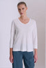 Shirt im slim fit mit v-ausschnitt aus geripptem strick, ärmellänge bis ellbogen aus leinenjersey