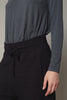 Wide and soft wool and viscose knit pants with jacquard pattern. Fastened at waist by knit belt with drawstring at front. Welt pockets on the front.