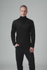 Regular-fit, fully fashioned rib knit sweater made of two-tone virgin wool and linen. Crater collar with three-button opening in front. Ribbed cuffs and hem.