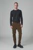 Garment-dyed regular-fit chino trousers made of pixel-effect velour. Fastened with a button and a zip fly. Belt loops. Slash front pockets in line with a slanting side cut. Slanting back pockets in line with the cut and stitched with thick thread. Hanging loop label.