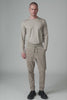 Garment-dyed loose-fit jogging trousers made of pixel-effect velour. Knitted elastic waistband, button fly, slash front pockets reinforced with cotton canvas tape, back pockets in line with the cut, side and yoke felled with thick cotton thread, hanging loop label.