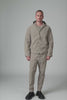 Garment-dyed loose-fit sporty jacket made of pixel-effect velour. The garment can be folded away into a hood pocket. Zip fastener, vertical side seam pockets, small back yoke with a band that stretches all down the sleeves, button cuffs, longer hem at the back, stitching with thick cotton thread, linen lining in the hood and the body, twill lining in the sleeves, hanging loop label.
