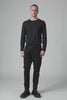 Loose-fit, garment-dyed jogging trousers made of compact cotton and elastane gabardine. Waist and fly fastened with cotton fibre buttons. Fully elasticated waistband with a waxed drawstring. Belt loops. Straight front pockets. Patch pockets at the back. Side and yoke felled with prominent, thick cotton thread. Hanging loop label.
