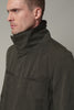 Trench dal taglio contemporaneo in tessuto di cotone-nylon-poliestere smerigliato e water-repellent. Collo con maglia interna a coste in lana vergine, apertura zippata, tasche superiori con entrata dall'alto e laterali con entrata verticale e sacco con soffietto nel fondo.