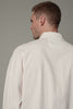 Camicia oversize in tessuto microarmaturato di cotone-lino leggermente stretch tinta in capo. Collo all'italiana, apertura con bottoni a vista, tasche a filo dei fianchi, polsi chiusi da bottoni, motivo centrale posteriore ad inserto e vela con dettaglio corrispondente allo stesso.