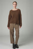 Maglia girocollo in filato di Alpaca Naturale, con texture bouclè. Volume oversize, con spalla scesa e lunghezza alla vita. Scollo, polsi e fondo con coste.