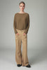 Pantalone dalla vita regolare in tencel e cotone stretch. tasche sotto baschina davanti e dietro. chiusura con gancio e bottone. gamba regolare che si apre sul fondo leggermente a zampa.