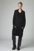 Cardigan lungo diminuito in lana-alpaca-poliamide, loose-fit, caratterizzato sul dorso da un intarsio in filato stampato. collo sciallato, apertura bottonata e fondi in tubico.