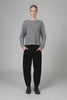Maglia oversize in alpaca misto lana. Scollo sbarcato con costa e ricciolino verso lesterno. Manica a pipistrello con costa al polso.