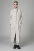 Cappotto lungo sfoderato, di linea aderente, in maglia di lana-viscosa con motivo a resca su un lato. il capo è caratterizzato da un collo alto, tasche inserite nel fianco e una abbottonatura sagomata con sette bottoni e 1 contro bottone sul collo. sul davanti e sul dietro motivo di tagli a vivo sagomati e impunturati.