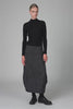 Gonna foderata, vestibilita' morbida, linea bombèe, realizzata in un morbido tessuto di lana lino stretch. il capo ha una lunghezza al polpaccio, ed è arricchito da 2 pieghe profonde, sul davanti e da una importante balza al fondo. la chiusura è al centro dietro con zip.