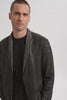 Giacca in pelle leggera di agnello. Collo a rever intero con piolino avvitato di chiusura nel bavero, apertura con bottoni nascosti, tasche a taglio vivo, corpo e polsi foderati in tessuto, maniche foderate in saglia di viscosa, taschino interno con bottone di chiusura, piccanello.